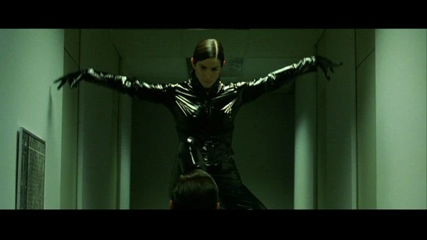 Первый раз Тринити появилась в начале первого фильма, во время телефонного разговора с Сайфером, который слышен за кадром, а потом она спасалась от агентов, и в конце концов вернулась в реальный мир через телефонную трубку.